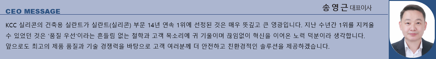 | KCC 실리콘, 한국품질만족지수(KS-QEI) 실란트(실리콘) 부문 14년 연속 1위 수상 | 2025-10-29 |